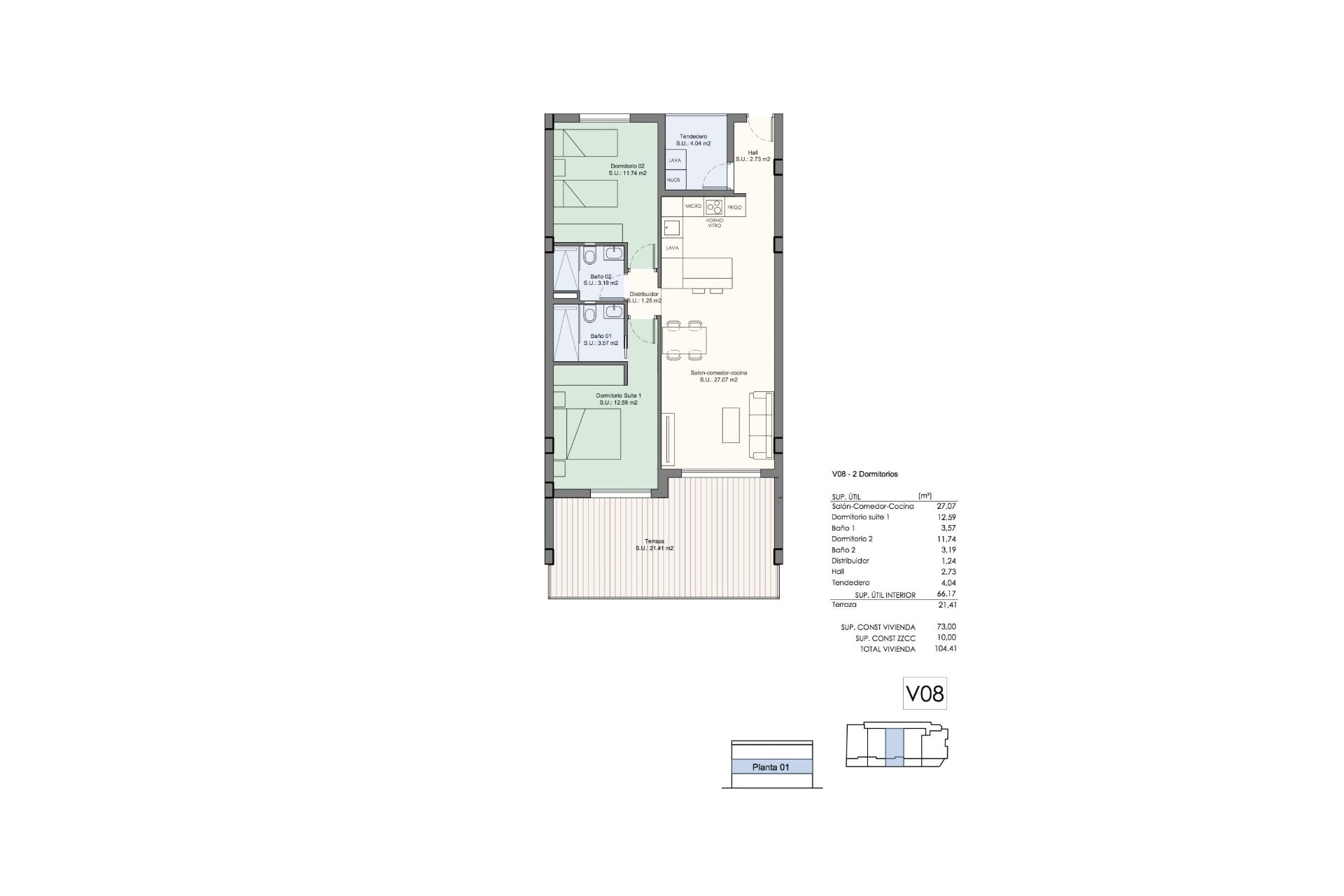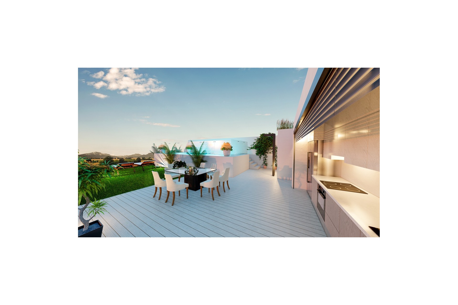 This new residential development is nestled in the serene area of Alicante, Benijofar. It consists of 21 homes, with 5 units per floor in the first phase and 2 units per floor in the second phase. The properties offer 2 to 3 bedrooms and 2 bathrooms. The penthouses are particularly enticing, featuring large private solariums starting from 75 square meters. These solariums are equipped with a restroom and a pre-installation for a kitchen, perfect for enjoying the beautiful summer sunsets.