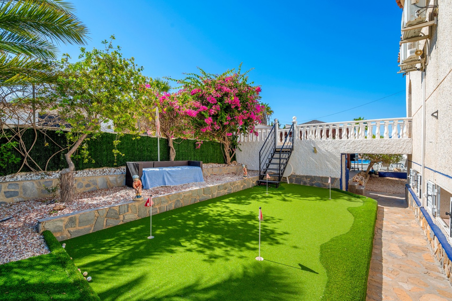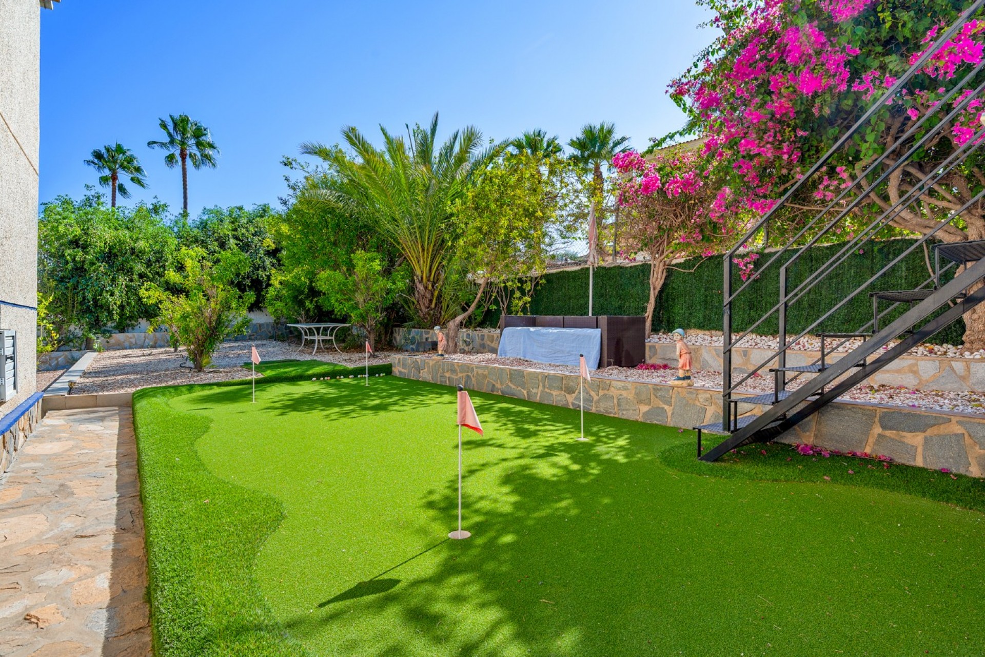 The villa is surrounded by a large, low-maintenance garden, complete with its own putting green to practice your golfing skills.