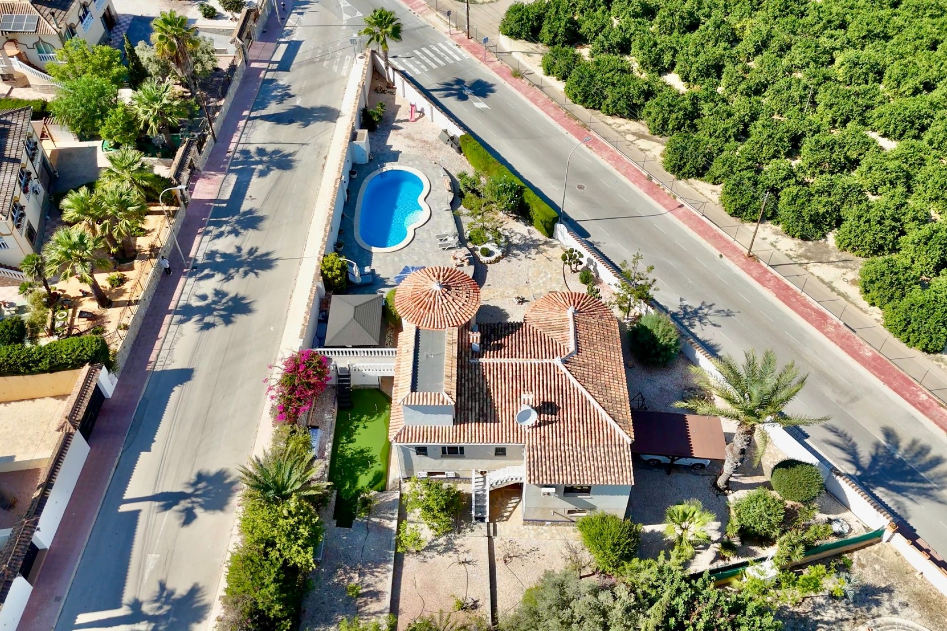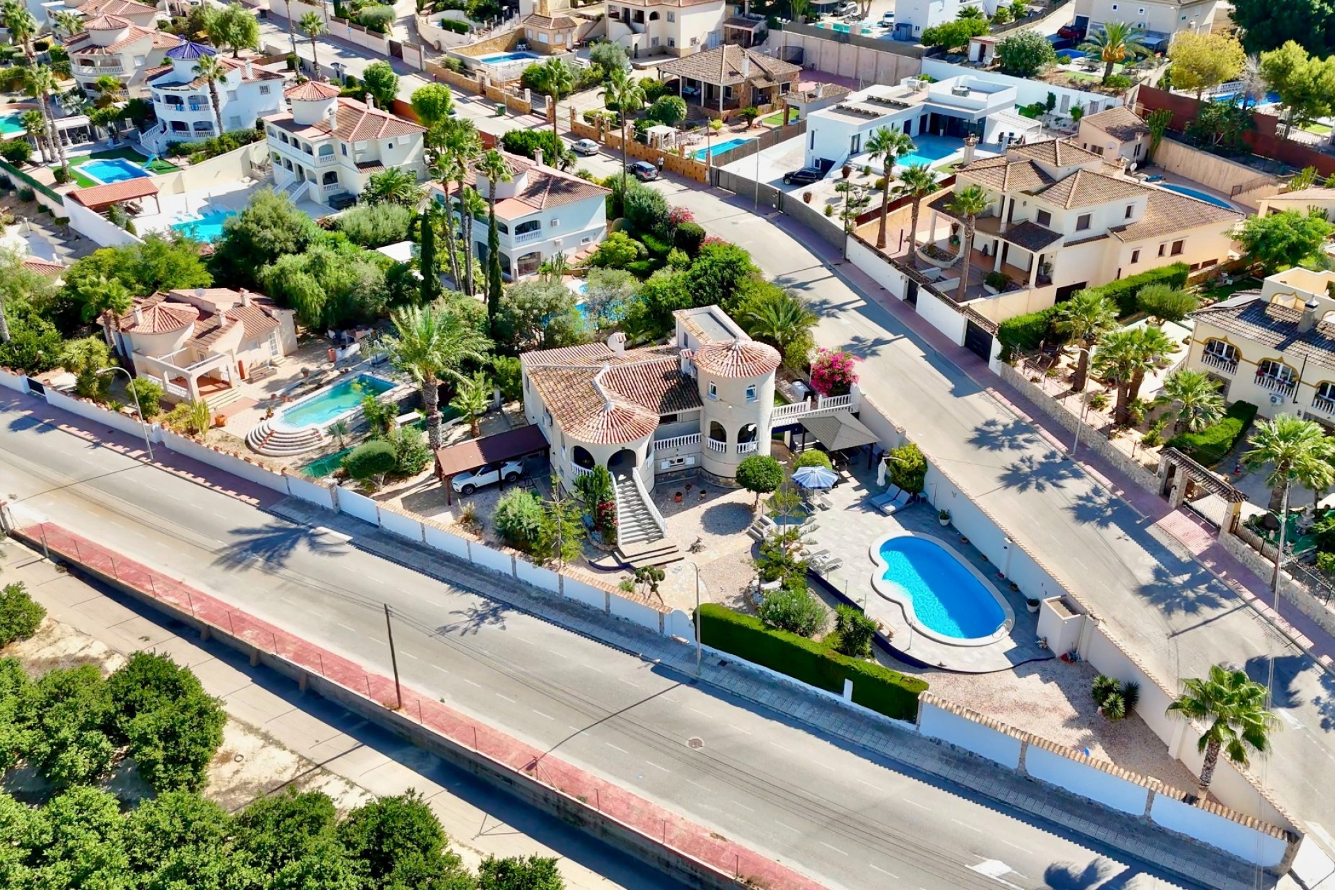 Enjoy endless sunny days in this magnificent Spanish-style villa, perfectly located in Urb. Lomas De La Juliana, Almoradí, just minutes from the prestigious La Finca Golf Resort.