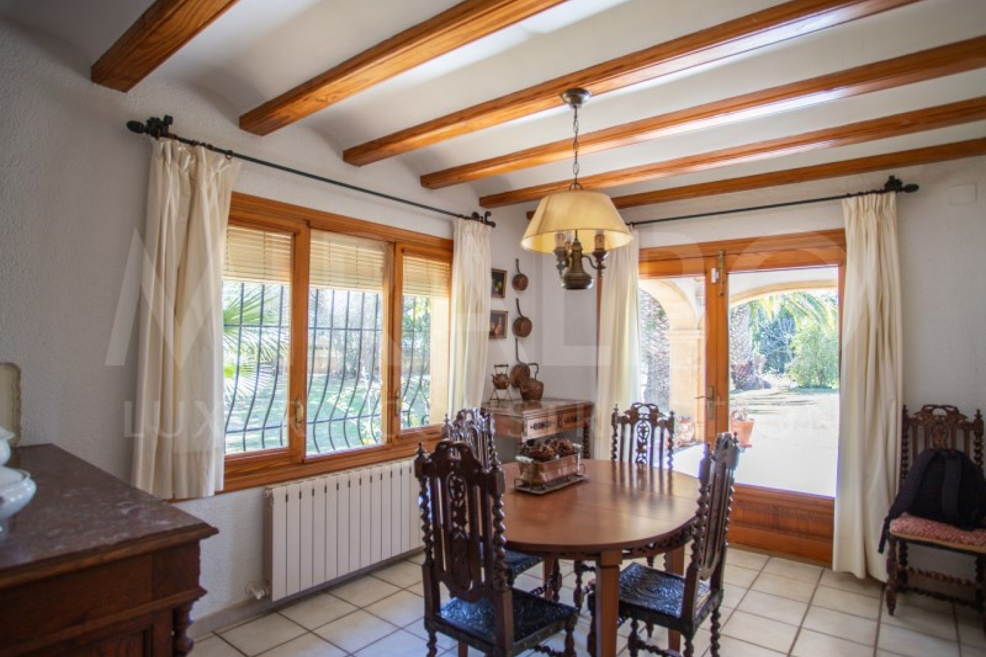 Located in a quiet residential area surrounded by nature, this villa offers a rare combination of comfort on a single level, privacy, and a plot with significant potential. The house sits on a sunny 2,679 m² plot and features 476.5 m² of built area. The main floor covers 214 m², while the lower level offers 262 m² of open space with natural light and exterior access, perfect for a garage, gym, recreational area, or even an independent apartment. The property boasts a large south-facing naya with unobstructed views. From here, you can access the main living room with a fireplace and the separate dining room connected to the kitchen, which includes a pantry and the option to open it up to the living space. There is also a second living room with a fireplace, ideal as a study or extra bedroom, plus a guest toilet. The sleeping area includes three bedrooms, all with en-suite bathrooms and walk-in closets, two of them facing south and one facing north. Outside, the established garden features fruit trees and complete privacy, with plenty of space for a pool and recreational areas. The property also includes 3,534 m² of urbanizable land, with a replotting project that would allow it to be divided into up to four independent plots, offering multiple development possibilities. Additionally, there are 5,000 m² more integrated into a PAI still pending development, further expanding future options. In total, the estate reaches 11,113 m², making it a unique opportunity for building multiple homes or for those seeking an investment with significant urban development potential. #ref:MRD5-235