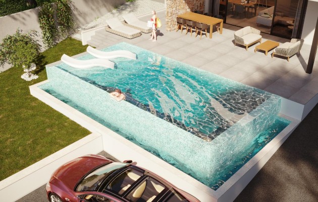 VILLAS DE OBRA NUEVA EN PINAR DE CAMPOVERDE 2 Villas de Lujo de Obra Nueva con piscina infinita y zona de jacuzzi, gran parcela de 700 m2, gran terraza y jardín privado que rodea la propiedad le permite disfrutar de todas las horas de sol, todos los días del año. La propiedad dispone de 4 dormitorios y 3 baños completamente equipados. Diseñado en dos niveles con un estilo contemporáneo y un concepto de planta abierta, que comprende una cocina totalmente equipada y salón-comedor. La propiedad cumplirá con los más altos estándares y estará equipada con: Piscina privada infinita con zona de jacuzzi y ducha solar Zonas de terraza Cocina totalmente equipada: Frigorífico integrado. Placa de inducción en isla, extractor empotrado en techo. Horno y microondas elevados. Lavavajillas integrado. Lavadora en lavadero Baños completos: mueble con lavabo encastrado y espejo. Plato de ducha encastrado en gresite, a ras de suelo. Panel de ducha de cristal y calefacción sin suelo radiante Armarios empotrados con cajoneras Iluminación interior y exterior Instalación de video portero Preinstalación de aire acondicionado Puerta de garaje con motor Villa situada en Pinar de Campoverde (Alicante), rodeada de servicios, instalaciones deportivas, cerca de varios Campos de Golf como Las Colinas y Lo Romero Golf, además de estar a 10 minutos del Mar Menor y playas del Mediterráneo.
