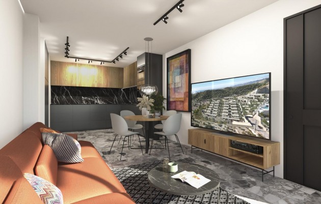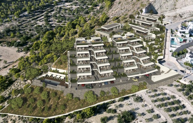 COMPLEJO RESIDENCIAL DE OBRA NUEVA EN FINESTRAT Complejo residencial único y exclusivo de nueva construcción en Balcón de Finestrat. Este complejo de modernos apartamentos y áticos todos con 2 dormitorios, 2 baños, cocina americana con la sala de estar y comedor y terrazas. Áticos con solarium privado. Cada propiedad tiene plaza de aparcamiento subterráneo y trastero. Complejo residencial cerrado con piscina comunitaria para disfrutar de una de las mejores ubicaciones de la Costa Blanca. Es una gran oportunidad y privilegio poder vivir con este entorno de golf y playa, cerca de todas las comodidades de todos los servicios considerado uno de los mejores lugares para invertir. Finestrat situado en la comarca de la Marina Baixa de la Costa Blanca. Benidorm está a sólo cinco minutos en coche de las propiedades y ofrece todos los servicios que pueda necesitar, incluyendo tiendas, bares, restaurantes, supermercados, bancos, farmacias y varias escuelas privadas internacionales. Cerca de las playas de Levante, Poniente y Cala de Finestrat, con más de 6km de longitud que se encuentran entre las mejores de Europa galardonadas por la Unión Europea con Banderas Azules. Todos los servicios de ocio como los parques temáticos de Aqua Natura, Terra Mítica, Terra Natura, Aqualandia y Mundomar, los campos de Golf Sierra Cortina y Villaitana, senderismo y escalada en el Puig Campana un marco natural incomparable o disfrutar de los deportes náuticos. Distancia al mar 4 km, al aeropuerto 26 km y al golf 1km. Complejo situado a 40 minutos del aeropuerto de Alicante.