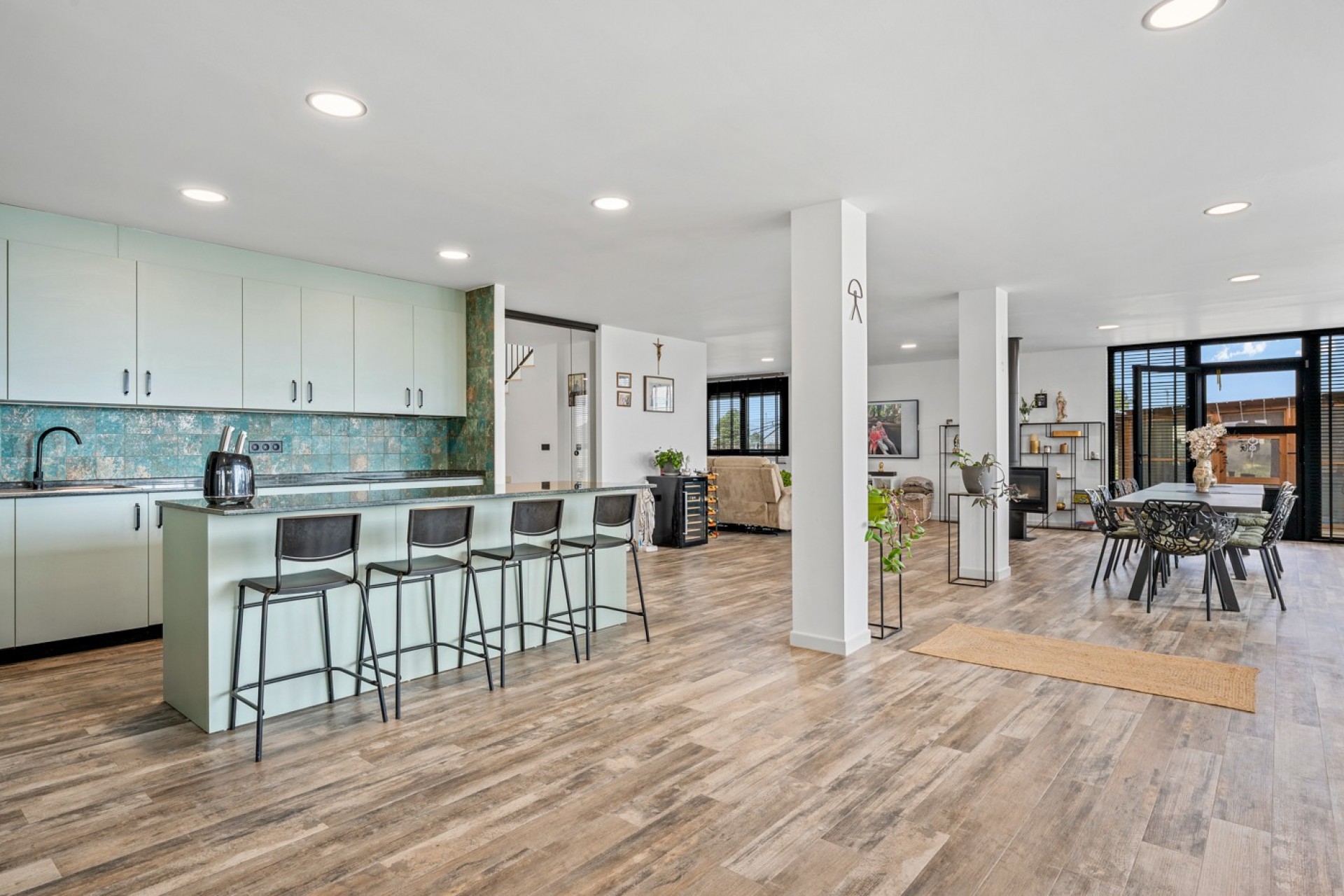 Au rez-de-chaussée, vous découvrirez un espace de vie lumineux et spacieux avec une cuisine ouverte entièrement équipée, créant un cadre convivial et fonctionnel. Ce niveau comprend également un grand débarras, trois chambres généreuses et des salles de bains modernes, conçues pour un confort optimal.