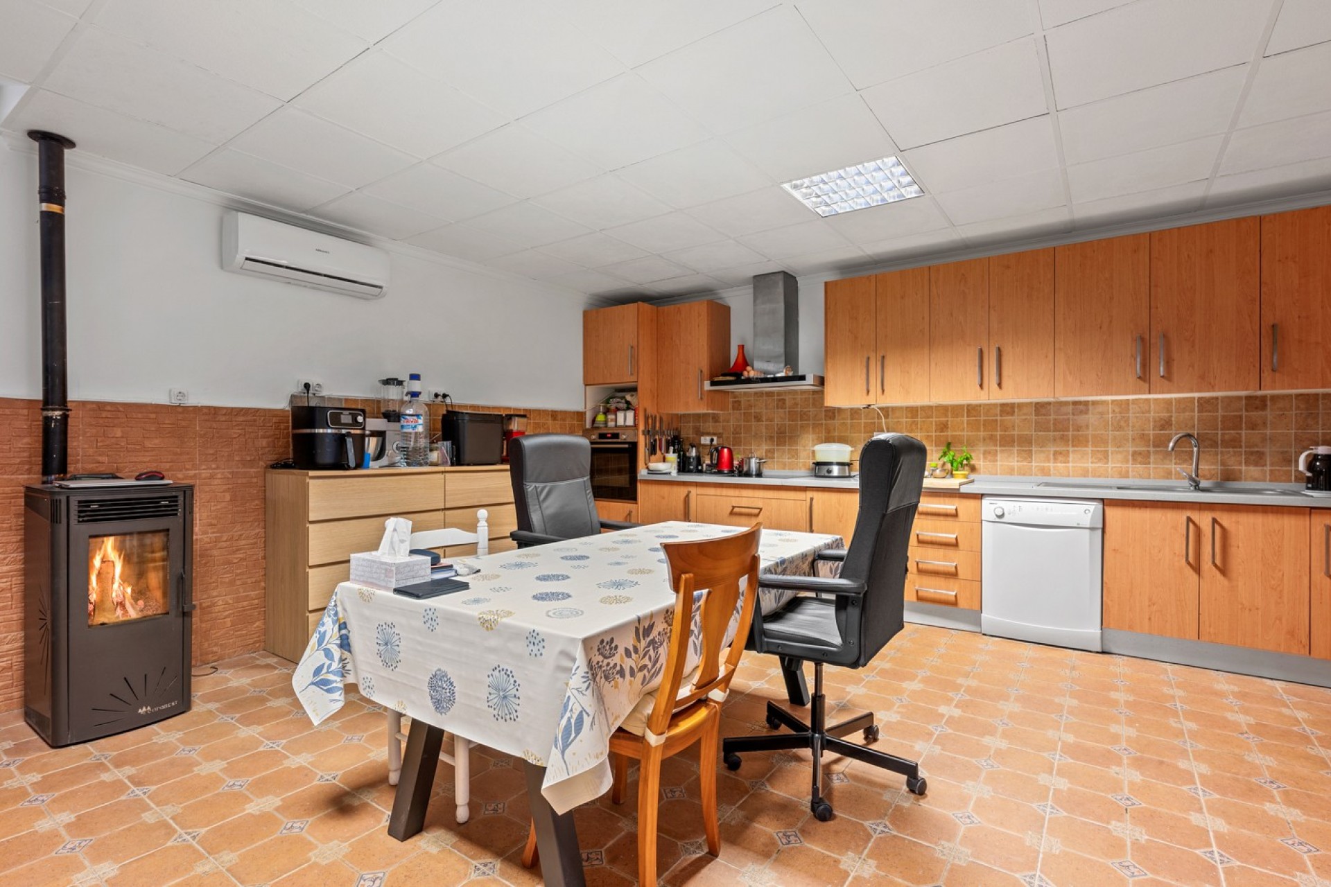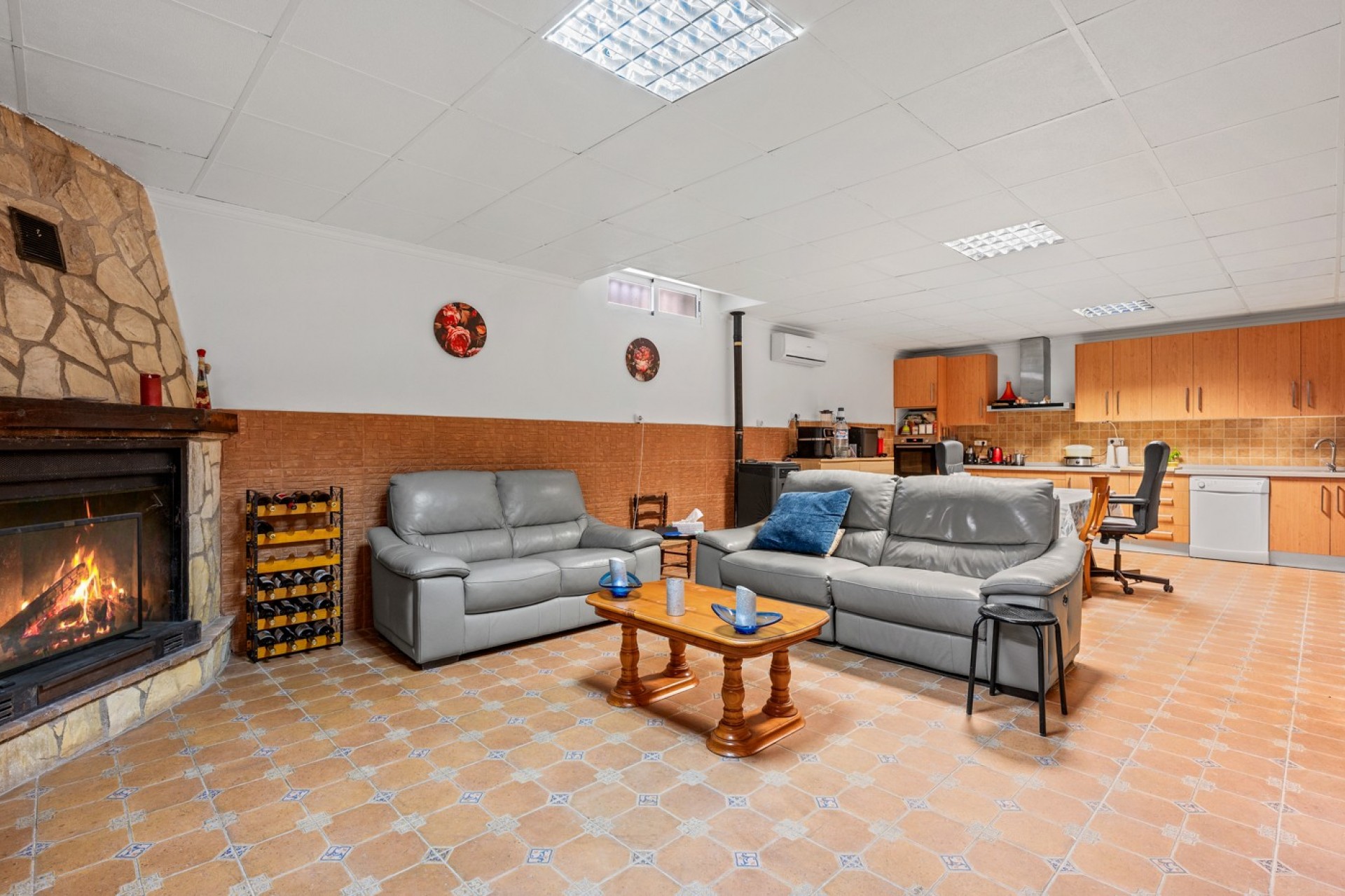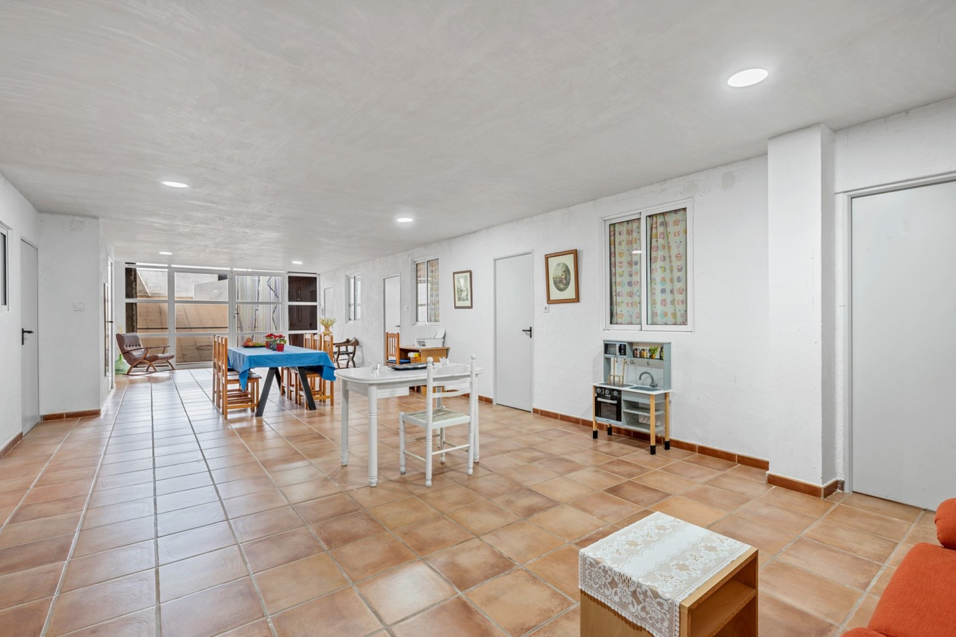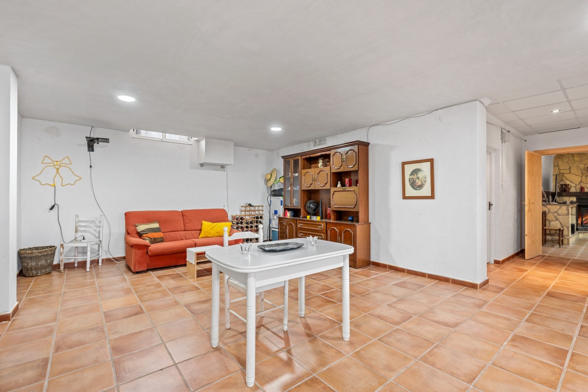 Le véritable atout de la propriété se trouve au sous-sol. Avec sa distribution actuelle, il propose quatre chambres supplémentaires, un débarras, une cuisine entièrement équipée et un espace salon, le tout relié par un patio intérieur ou salle polyvalente. Cet espace offre d’innombrables possibilités : logement pour invités, personnel, activité locative ou centre de retraite.