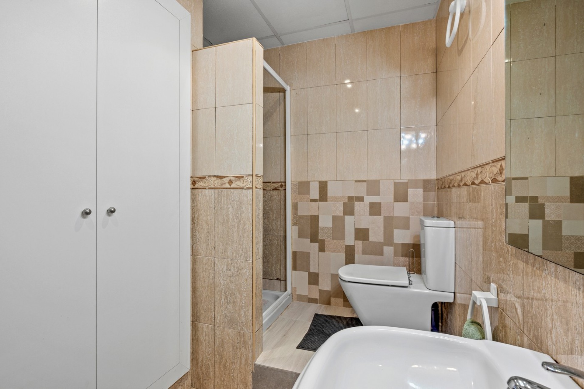 À l’extérieur, la villa continue de séduire avec un garage privé, un espace barbecue et une magnifique piscine de 12 x 4 mètres. Vous y trouverez également un salon fermé avec cuisine extérieure et douche, parfait pour profiter des soirées d’été. Le vaste terrain est agrémenté d’oliviers et d’arbres fruitiers, renforçant son charme méditerranéen.