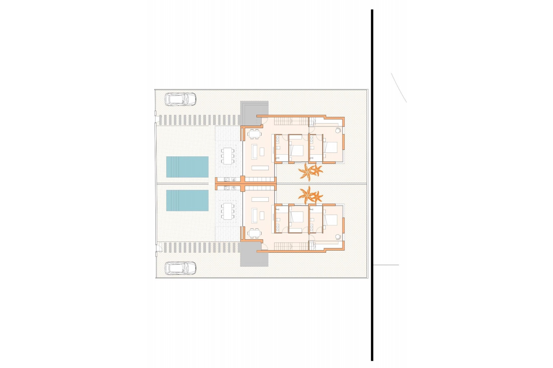 NIEUWBOUW HALFVRIJSTAANDE VILLA'S IN ALTAONA GOLFRESORT, MURCIA Nieuwbouw een buitengewone ontwikkeling van halfvrijstaande villa's genesteld in het prachtige Altaona Resort in Murcia. Deze exclusieve enclave biedt een ideale omgeving om de naadloze samensmelting van luxe wonen en de rustige mediterrane levensstijl te ervaren. Voel hoe het landschap het huis binnenkomt door de grote ramen. De tuin krijgt een grote aanwezigheid en maakt deel uit van de essentie van de villa. Binnen zijn ze ruim en licht, ontworpen om het mediterrane licht door de kamers te laten stromen. Nieuwbouw halfvrijstaande villa's met open keuken, 3 slaapkamers, 3 badkamers, terras, privétuin met zwembad en parkeerplaats. Kenmerken: - De woningen hebben Energie Certificaat Rating A. - Airconditioning met kanaalsysteem en warmtepomp. In het hele huis behalve in de badkamers. - Elektrische vloerverwarming in de woonkamer en badkamers met individuele thermostaat per zone. - Luchtverversingssysteem in de keuken, badkamers, wasruimte en gastentoilet. - Keuken Inclusief afzuigkap en elektrische inductiekookplaat met 3 kookpunten. - Inclusief LED-verlichting in de woonkamer, hal en buiten. De rest van de kamers zijn voorbereid voor de toekomstige eigenaar om hun verlichting te installeren. - USB-aansluitingen in alle slaapkamers. - Elektronische intercom voor toegang van buiten naar binnen. Deurbel bij de ingang van het huis. - Domoticasysteem met twee slimme schakelaars. - Aangelegde privétuin met druppelirrigatiesysteem en zwembad. - Buitenomheining van de urbanisatie. - Toegangspoorten voor voertuigen tot de urbanisatie: Metalen schuifpoort met systeem om op afstand te openen. Residentieel gelegen in Altaona Golf op slechts 15 minuten met de auto van het centrum van de hoofdstad Murcia en op 20 minuten van de stranden kunt u genieten van de rust en veiligheid die de golfbaan biedt met 18 holes en het comfort om dicht bij alle diensten te wonen. De luchthaven van Murcia, Corvera, ligt op slechts 15 minuten rijden.