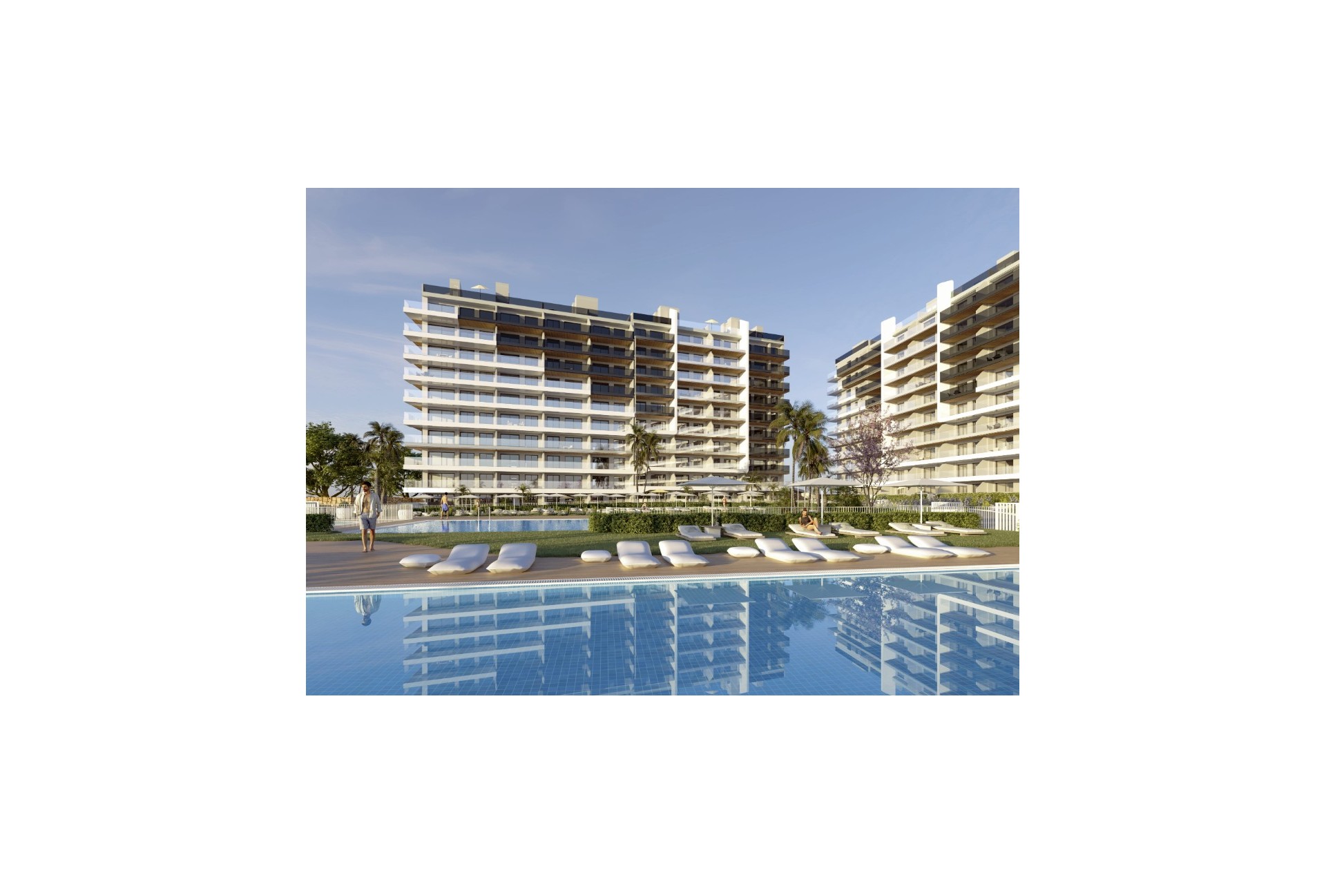 De woningen zijn ontworpen voor comfort en plezier het hele jaar door. Beschikbaar in 2 en 3 slaapkamers met 2 badkamers, onderscheiden ze zich door hun open indeling met een geïntegreerde keuken in de woonkamer, wat ruimte en licht brengt in elke hoek. Je kunt kiezen uit appartementen met een privétuin op de begane grond, ruime terrassen op de tussenliggende verdiepingen of een spectaculair privé solarium op de penthouses.