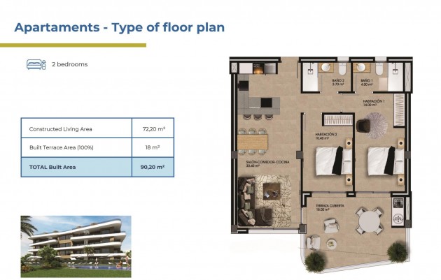 Exclusief wooncomplex in Punta Prima (Orihuela Costa) - Op slechts 1 km van de zee Welkom bij een nieuw en exclusief wooncomplex in Punta Prima, Orihuela Costa. Dit moderne complex ligt op slechts 1 km van de Middellandse Zee en biedt een scala aan 2- en 3-slaapkamerappartementen en 3-slaapkamerbungalows die zijn ontworpen om het ultieme in comfort en levensstijl te bieden. Ruime appartementen met prachtige buitenruimtes De appartementen in dit complex hebben grote terrassen, perfect om te genieten van het zonnige mediterrane klimaat. Elke woning heeft een parkeerplaats in een ondergrondse garage en een berging voor extra gemak. De appartementen op de begane grond hebben een privétuin, terwijl de penthouses ruime solariums hebben - ideaal om van de zon te genieten en het uitzicht te bewonderen. Luxe bungalows met privétuinen en solariums De bungalows op de begane grond hebben uitgestrekte hoektuinen met parkeerplaatsen, waardoor ze extra ruimte en privacy bieden. De bungalows op de bovenverdieping hebben ook een tuin met parkeerplaats en een privé solarium, waar je kunt ontspannen en in volledige afzondering van de zon kunt genieten. Uitzonderlijke gemeenschappelijke ruimtes voor ontspanning en vermaak Dit wooncomplex is ontworpen als een oase van rust met een scala aan voorzieningen om van te genieten. Bewoners hebben toegang tot drie zwembaden, twee jacuzzi's, prachtig aangelegde tuinen, wandelgebieden, een gymnastiekzaal en een kinderspeelzone. Alles wat je nodig hebt voor een ontspannen levensstijl is hier te vinden, op een steenworp afstand van je huis. Toplocatie met gemakkelijke toegang tot voorzieningen Punta Prima is een zeer gewilde wijk in Orihuela Costa, bekend om zijn uitstekende locatie en voorzieningen. De prachtige stranden van de Costa Blanca liggen op slechts enkele minuten afstand, en je bent dicht bij winkelcentra zoals Punta Marina (2 km) en La Zenia Boulevard (4 km). Golfliefhebbers zullen de nabijheid van verschillende golfbanen waarderen, terwijl de internationale luchthaven van Alicante op slechts 50 km afstand ligt.