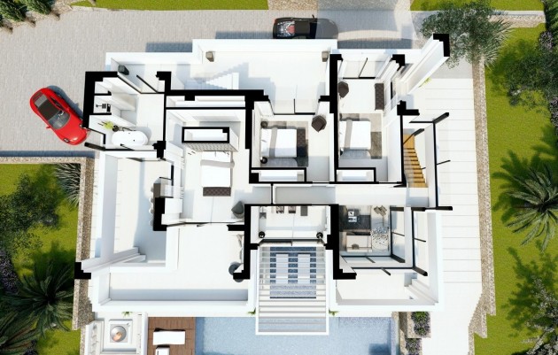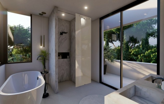NIEUWBOUW VILLA IN BENNISA Luxe nieuwbouw villa te koop in Benissa, Costa Blanca. Luxe villa in Benissa, moderne architectuur met infinity pool 13x4,5m. Deze villa is gebouwd op een groot vlak perceel met uitzicht op zee. Het heeft 4 slaapkamers en 4 badkamers, solarium van 197m2, kelder van 205m2. Het heeft ook een buitenparkeerplaats voor 2 voertuigen, met bedrukte betonnen bestrating, bedekt met een designzeilluifel. Vanaf de parkeerplaats is de toegang tot de begane grond via een toegangsdeur tot het pand met vast veiligheidsglas aan de zijkant. Van daaruit gaan we naar de grote woonkamer met dubbele hoogte waarin zich de designtrap bevindt van stalen balk, met zwevende houten treden en glazen balustrade die toegang geeft tot de eerste verdieping. Op de begane grond is er een gastentoilet, een grote wasruimte met toegang tot het buitenterras, een slaapkamer met inbouwkasten en een eigen badkamer en een grote gesloten keuken. De gehele begane grond heeft ramen van vloer tot plafond die veel licht geven en toegang tot grote terrassen en het zwembad. Op de eerste verdieping zijn er 3 slaapkamers en 2 badkamers, allemaal met toegang tot terrassen, waarvan één met een buitentrap die leidt naar het solarium van 197m2. Alle slaapkamers hebben ingebouwde kasten. Vanuit alle kamers op de eerste verdieping heeft u toegang tot een groot terras en tuin met een spectaculair uitzicht en een overloopzwembad, evenals een chill-outruimte met buitenhaard in de tuin. De kelder heeft een grote open ruimte waar u een bioscoop, een fitnessruimte, enz. In de uitrusting van deze villa benadrukken we de nieuwste technologieën die door het hele huis zijn geïnstalleerd. Zoals het spraakgestuurde domoticasysteem en vanuit de mobiele APP voor het alarmsysteem. Volledige installatie van airconditioningkanalen. Al deze mechanismen die nodig zijn voor de installatie van gezoneerde airconditioning, gegenereerd door luchttechnologie, op de begane grond en de begane grond. Mogelijkheid om Airzone te verbinden met het intelligente systeem van de woning en met Alexa. Aanleggen van elektrische vloerverwarming op begane grond en eerste verdieping. Mechanisch ventilatiesysteem in badkamers en keuken, luchtverversing en rookafvoer. Opwekking van sanitair warm water door middel van Aerothermisch systeem, in compacte units. Porseleinen steengoed tegels door het hele interieur van het huis. In natte ruimtes zoals douchevloeren, zal hetzelfde van het antisliptype zijn. Evenzo zullen antisliptegels worden gelegd in de buitenkant en in het solarium. In de keuken, eiland en werkblad afgewerkt in Silestone in grijstint, met glaspaneel in het voorste gedeelte van het werkblad in bijpassende tinten. Volledig ingerichte keuken van topmerk Küchenhouse, Parcélanos of vergelijkbaar. Badkamers volledig uitgerust met hoogwaardige voorzieningen. Video-intercom. Installatie van binnenverlichting met geïntegreerde LED-halogenen, indirecte verlichting met LED-balken ingebed in plafonds en kozijnen, in doorgangen en andere ruimtes. Aansluitingen voorbereid voor installatie van hanglampen in woonkamer en keuken. Buitenverlichting rondom bestaande uit design LED-wandlampen op de buitengevel en parkeerplaats, en vloerverlichting in terras- en zwembadgedeeltes. Landschap bestaande uit natuurlijke grasvelden en planten afkomstig uit de regio (olijfbomen, palmbomen, sinaasappelbomen, citroenbomen...). Perceelomheining gemaakt van blokmuur bekleed met droog steenmetselwerk. De villa is gelegen in een van de mooiste woonwijken van de Costa Blanca. De steden Calpe, Benissa en Moraira bieden een buitengewoon aantrekkelijke kustlijn van groot natuurschoon en ecologisch belang, met een ruige kustlijn met talloze stranden en verborgen baaien. Benissa gelegen tussen Valencia en de stad Alicante. De luchthaven Manises in Valencia ligt op een uur rijden en de luchthaven L'Altet in Alicante op 50 minuten rijden. Beide luchthavens zijn grote internationale luchthavens die worden bediend door een groot aantal goedkope luchtvaartmaatschappijen.
